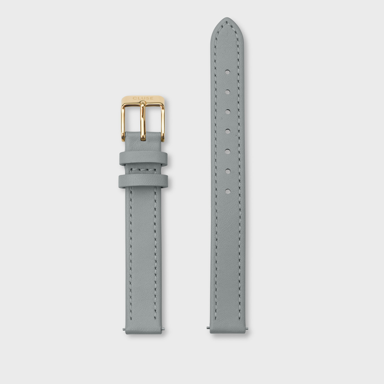 This high quality leather grey 12 mm women's watch strap is beautifully stitched and finished with a gold coloured clasp. Equipped with an easy click on/off system, you can combine it with any of our CLUSE watches fitting 12 mm straps.