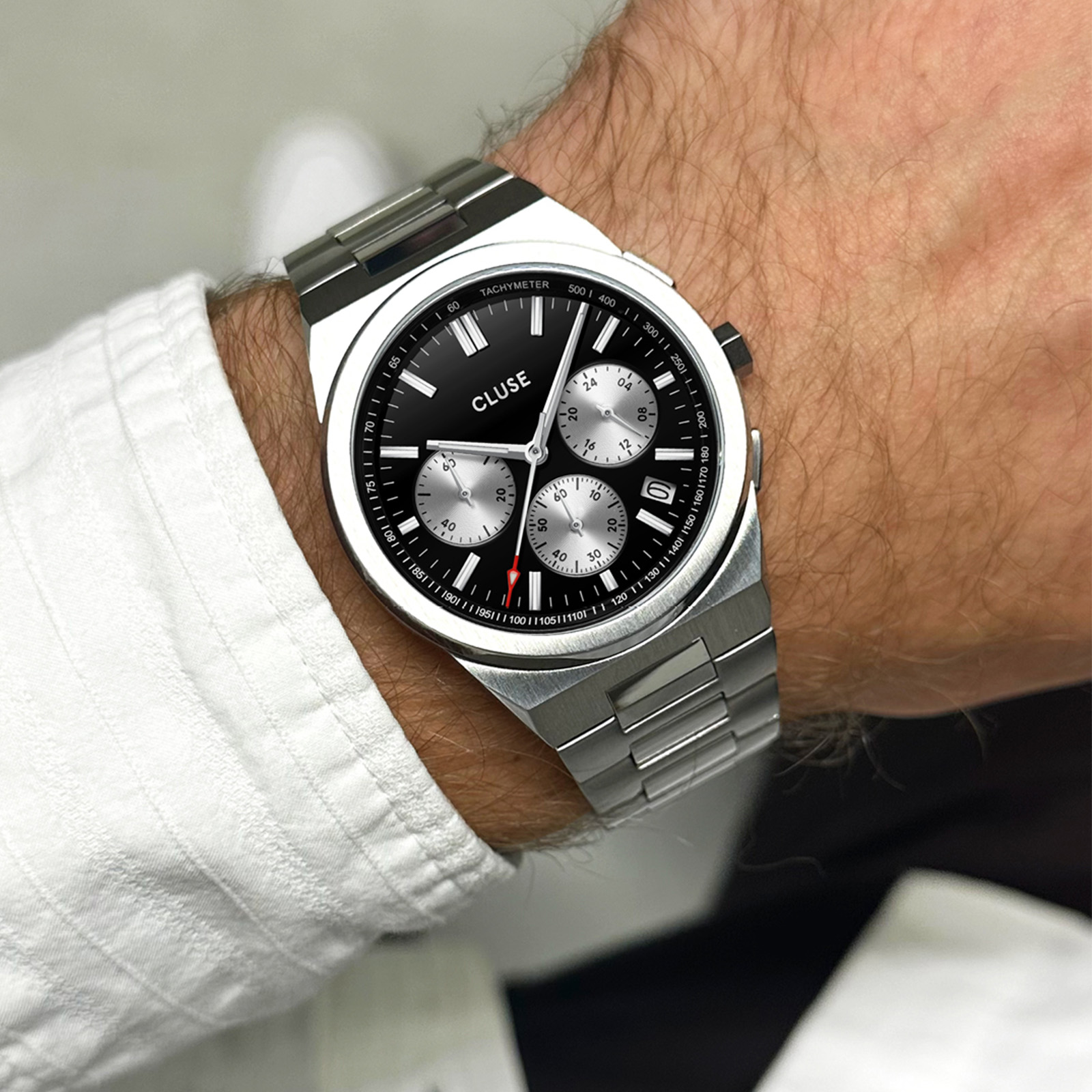 CLUSE Vigoureux Chronograph Black/Silver Link CW20806